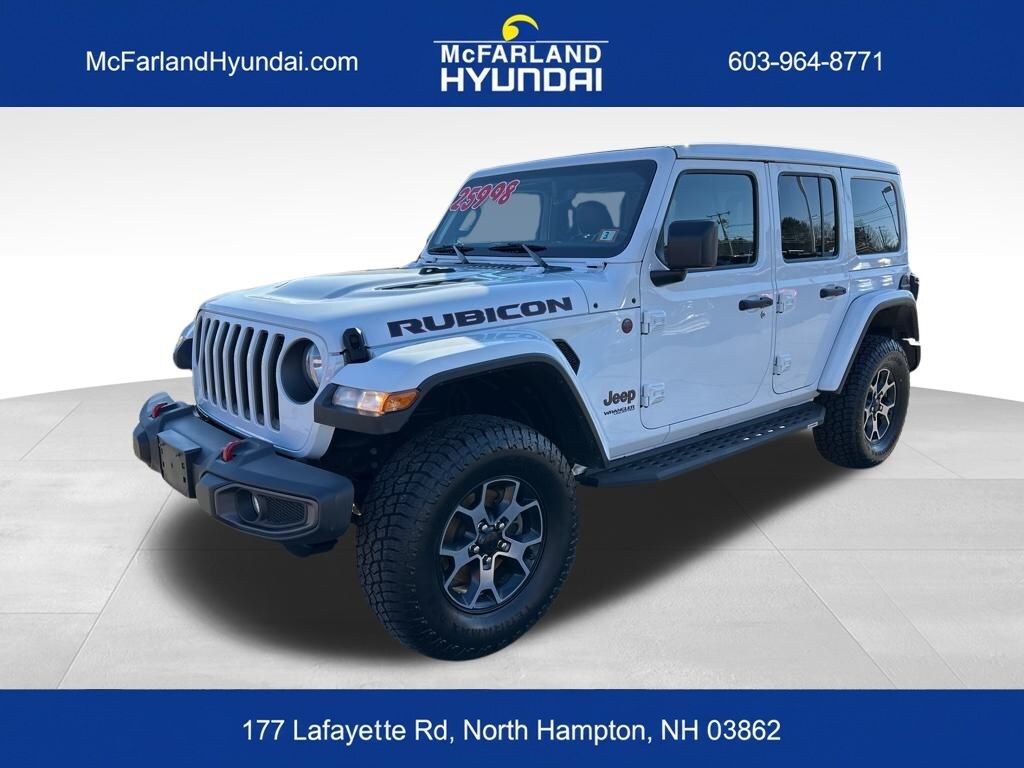 Conquer the road and the trail in this 2019 Jeep Wrangler Unlimited Rubicon 4WD, finished in Bright White Clearcoat and powered by the legendary 3.6L V6 24V VVT paired with a smooth 8-Speed Automatic transmission. This Wrangler is fully serviced and includes N.H. State Inspection, a 20-day plate, and transparent pricing with a $572 Dealer Doc Fee no hidden fees or mandatory add-ons.